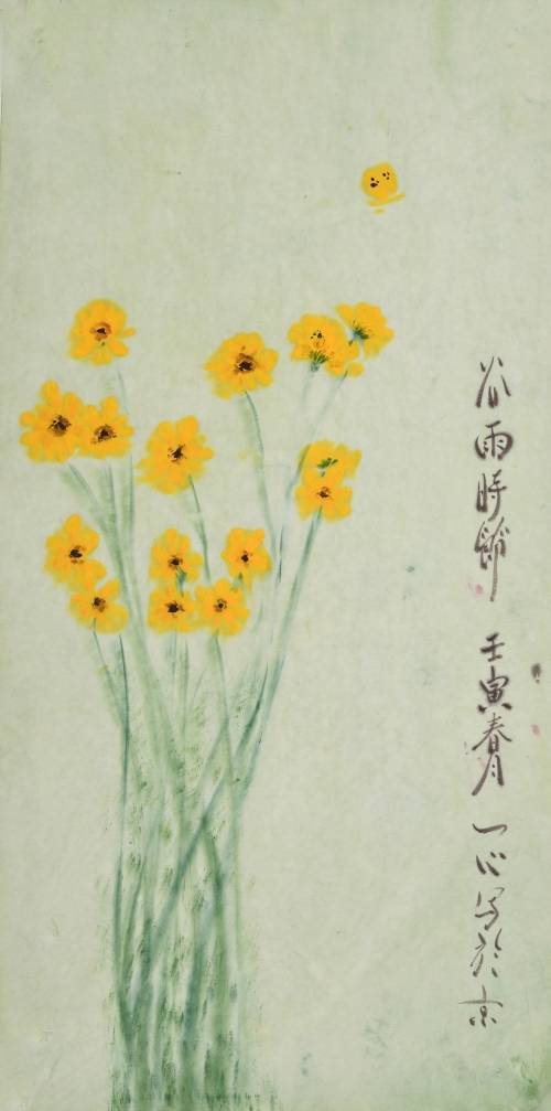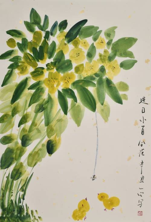 陈一心漫步在园林中、田野间,将寻常题材以富有想象力的审美图式样表现出来,将春天的小花、路边的小草巧妙移入画卷,笔墨之间充满着跃动的生命力。因此他的作品清灵纯澈、神韵天成。这些作品在立意、构图、色彩等方面,完全体现了现代审美情趣,充满鲜明的个性创造和时代精神。林间的微风徐徐吹拂着,大自然的一花一叶,都在画家质朴的笔墨之下充满了灵动的韵味。在画家笔下,那种自由舒惬的意境,带给人以无限的享受。