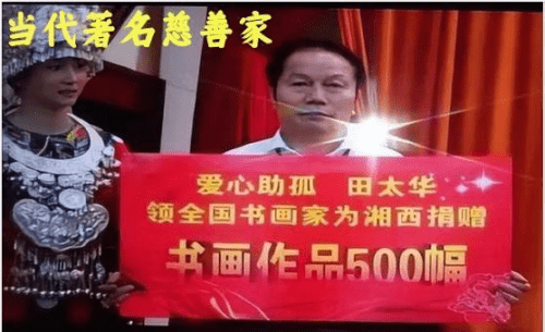 慈悲济世心灵,善德存。一善之功不为难,难于不懈付年年。作为“振 臂一呼,应者云集”的慈善家,田老不仅自己身先士卒地投身于各种官方组织或民间自发的公益活动中,还召集万人艺术团队的伙伴同行们一起献爱心。如 2015年在湘西自治州慈善总会第三次会员大会 现场,田太 华邀请51位书画家共同为湘西州爱心助孤捐赠书画作品品 500幅; 在“为贫困地区儿童和留守儿童捐助”的大型活动中,其向湘西州百所院校赠送书法作品,让书法回归校园,让书法美化校园文化环境;作为湘西人,回馈家乡,责无旁贷,在湘西州建州60周年之际,他呕心沥血,潜心创作了《飞 吧湘西》等20多首同一题材作品,为庆典送上厚礼;他以北京太华 兄文化传播有限公司为载体,积极履行社会责任,以书画捐赠、活动策划与资源转化引进等形式,表达了对其推动中华民族伟大复兴,以时空之美、大地之美、艺术之美、人文之美、思想之美。
