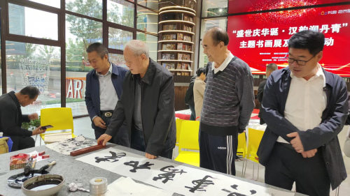 笔会现场尤为热闹:案台上笔墨纸砚整齐排布,墨香提前萦绕;名家与创作者们或凝神静气、悬腕运笔,墨汁在宣纸间晕染出“国泰民安”“山河锦绣”等苍劲字迹;或挥毫泼彩、即兴创作,朱砂的浓烈与石青的雅致交织,绘就汉风纹样、山河盛景与吉祥图景。围观市民与艺术爱好者不时发出阵阵赞叹,笔墨香与欢呼声交织回荡,生动呈现出“传统与当下交融、笔墨与时代对话”的鲜活艺术图景。