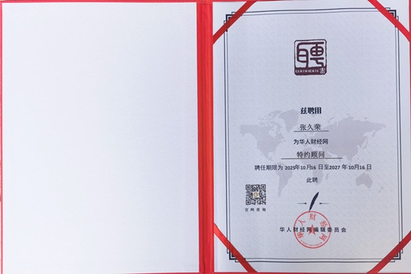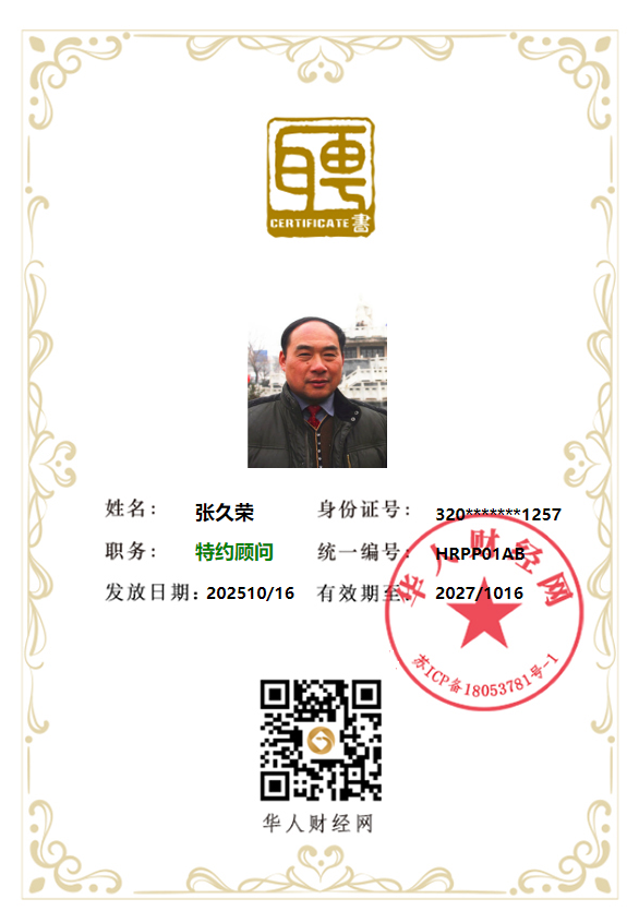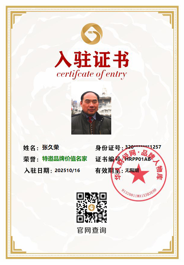 【品牌人物库·重点推荐】张久荣(发表证书)