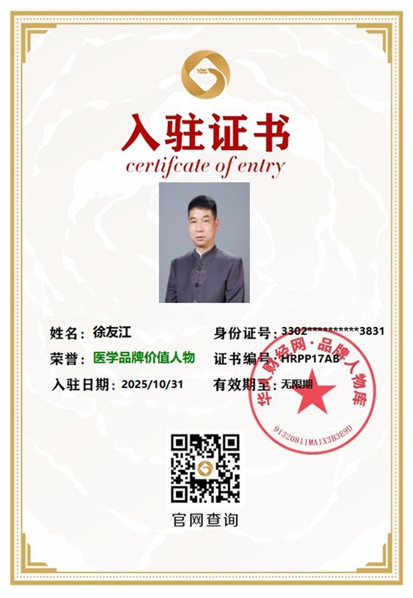 【品牌人物库·重点推荐】徐友江(发表证书)