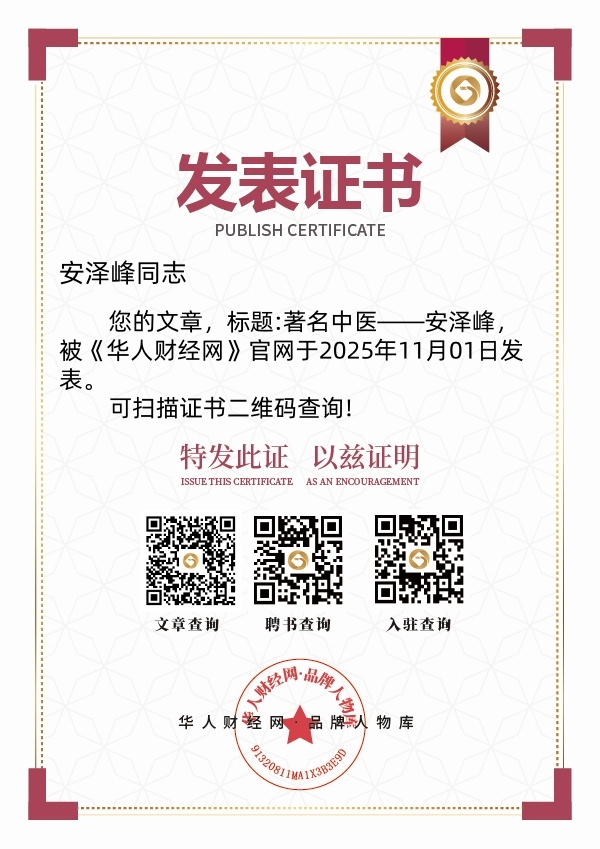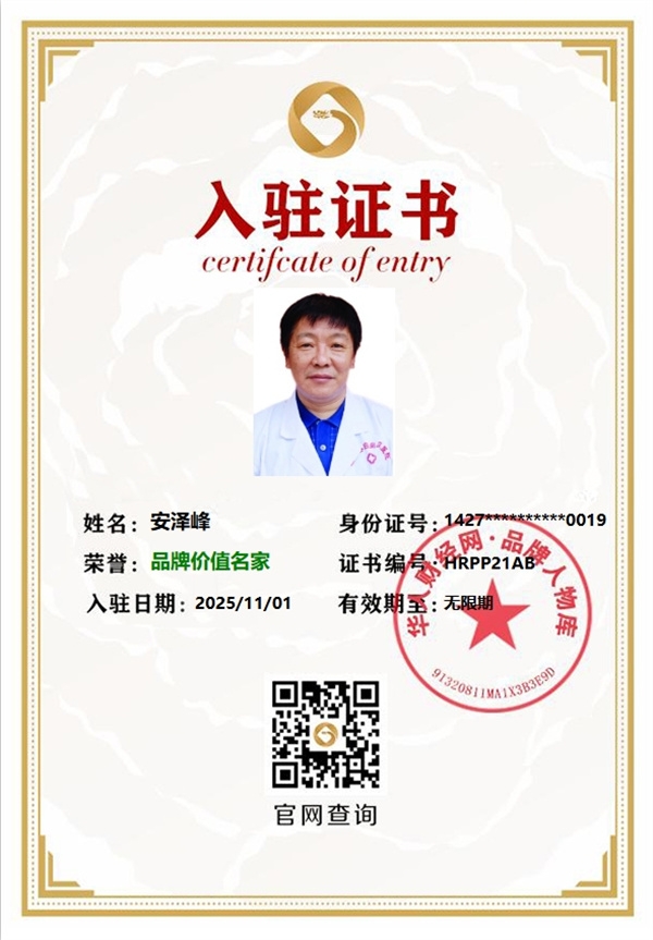 【品牌人物库·重点推荐】安泽峰(发表证书)