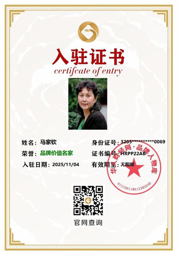 【品牌人物库·重点推荐】马家钦(发表证书)