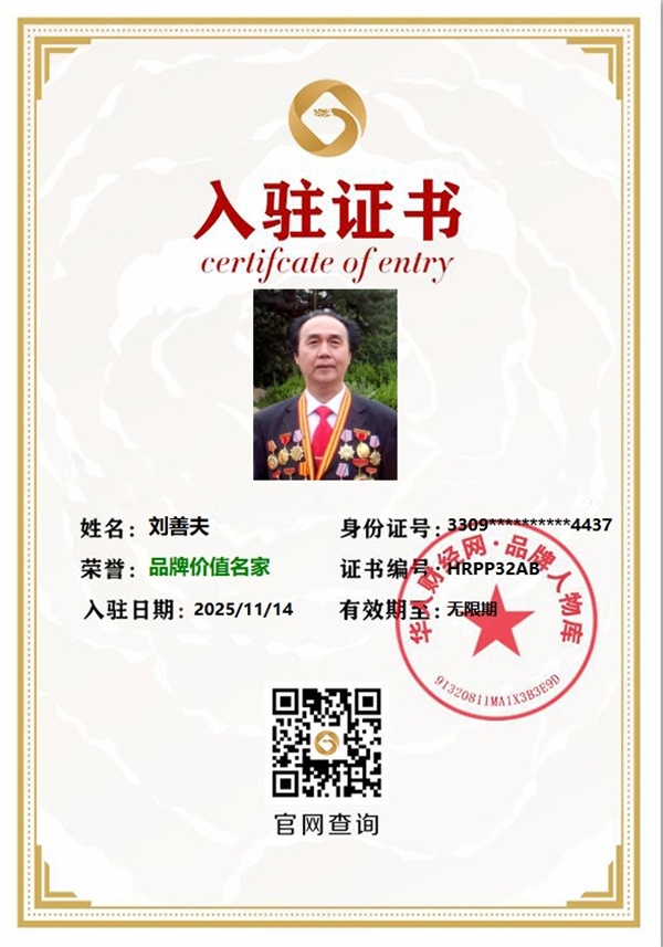 【品牌人物库·重点推荐】刘善夫(发表证书)