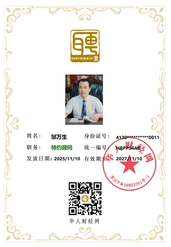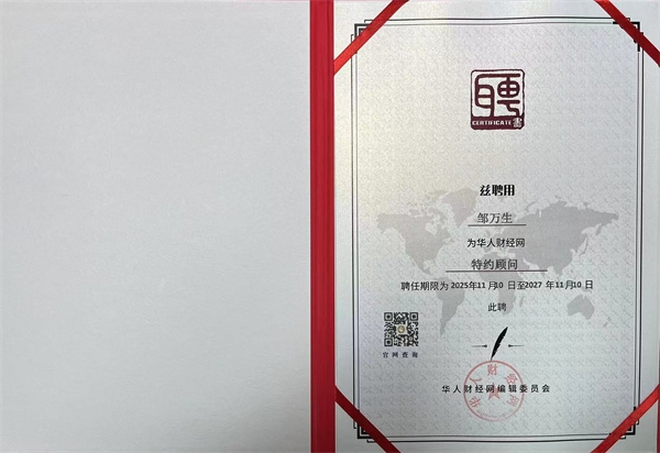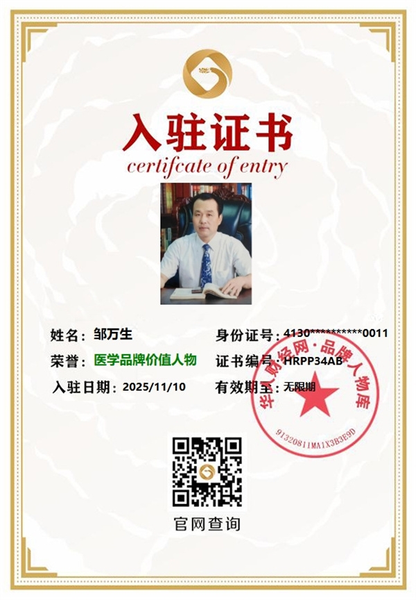 【品牌人物库·重点推荐】邹万生(发表证书)