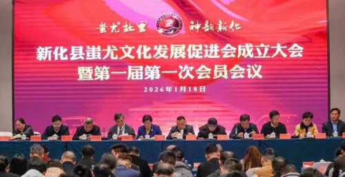 2026年1月18日,新化蚩尤华美大酒店内旌旗映礼,雅乐和鸣,新化县蚩尤文化发展促进会成立大会暨第一届第一次会员会议在此隆重举行。这不是一场普通的社团集结,而是一次跨越千年的文化邀约,是“蚩尤故里”新化对中华文明多元基因的深情守望,更是地方文化与时代发展同频共振的生动实践。当各界代表共同见证促进会揭牌的那一刻,沉睡于梅山大地的蚩尤文脉,正式迎来系统性传承、创新性发展的全新纪元。