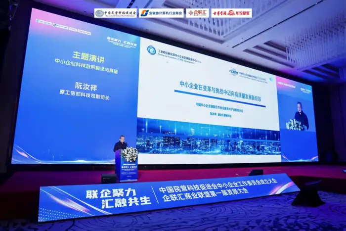 2026年1月18日下午,合肥市包河区施柏阁宴会厅,中国民营科技促进会中小企业工作委员会成立大会暨企联汇商业联盟第一届发展大会在此隆重开幕。本次大会以“联企聚力,汇融共生”为主题,旨在共谋中小企业发展新纪元。来自全国各地企业商业代表以及媒体界近千人参加了本次大会。