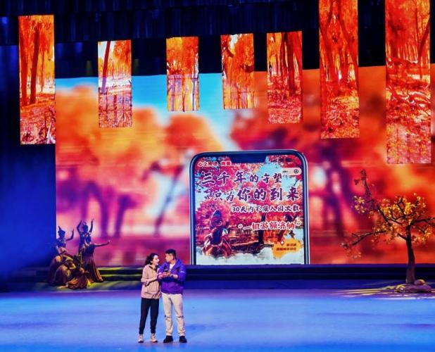 演讲结束后,大会创新推出《邂逅阿拉善》沉浸式主题演绎推介,以沉浸式情景剧为载体,整合阿拉善英雄会、五湖穿越、虎克公园、航天文化、胡杨林、居延古城、巴丹吉林沙漠等核心资源,融入阿拉善美食、驼奶、苁蓉、阿拉善礼物等特色物产,融合特别互动环节,为参会嘉宾全景式呈现阿拉善独特的自然奇观与人文魅力,生动诠释了“欢乐消费季”以内容创新激活消费兴趣的核心理念。