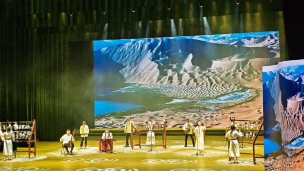 4月17日晚,大会演艺产品观摩展演活动在金色胡杨音乐厅启幕,为大会注入艺术色彩。展演集结阿拉善本土优质文艺资源,阿拉善盟乌兰牧骑声器乐、舞蹈演员同台献艺,以悠扬的琴声、长调民歌与豪迈的民族舞蹈迎接远道而来的嘉宾。