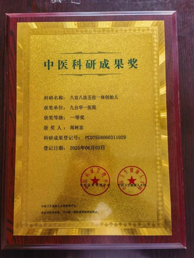 闻树忠带领团队将严谨的诊疗规范与人性化服务理念深度融合,所在单位获评“吉林省诚信单位”,个人荣膺“吉林好人”称号,其事迹载入《健康中国·国医精粹》典籍。