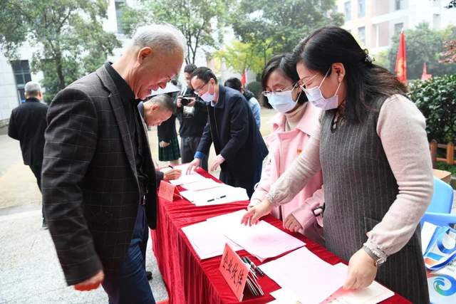 上午8时,我校领导班子成员以饱满、热情的精神状态在校门口喜迎各界领导、退休教师代表、企业代表以及来自五湖四海的校友。