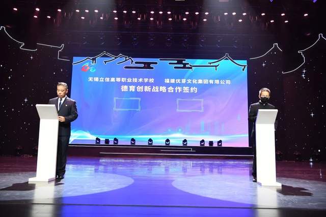 全体观众还一起见证了一系列高质量发展项目的隆重开启。福建优芽文化集团联合创始人、总裁张思达与副校长刘宏进行德育创新战略合作签约;华为技术有限公司江苏政企教育行业总经理李庆强与副校长王晓忠进行战略合作签约;汪克强和冯益民为新成立的学校理事会人员颁发聘书;夏成满、宋新春为无锡市财经职业教育集团成立揭牌;倪南代表江苏省中华职业教育社为学校“社员之家”授牌;李太生、唐加俊为“江苏省众创空间”揭牌。