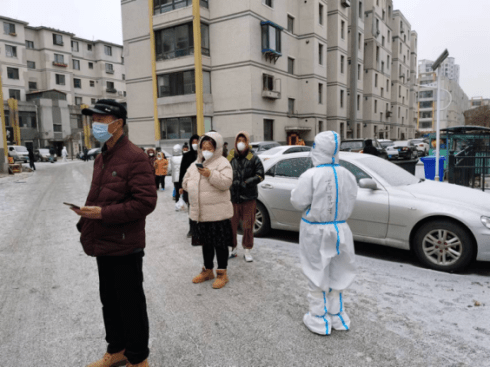 帝景嘉园的守护人新城子街第二小学王笑威。对于云峰社区帝景嘉园小区的居民来说,王笑威老师的身影是那么熟悉、那么温暖,一个手势就能和居民之间互相会意,他的红马甲风雪中更显夺目、亮丽。“拉开距离,有序进场”,他的声音魔法般指挥居民有序、迅速完成核酸检测。居民们不知道的是,王老师的手脚也会冻得冰凉,一整天一整天工作的他也会腰酸背痛。晚上回到家吃饭的力气都没有。然而面对新一天的工作,王老师毫不犹豫,又精神饱满站在居民面前。秩序特别好的时候,他主动帮助社区工作人员贴试管扫码标签,一支支试管,一张张标签,整整齐齐放到架子上,大大减轻了社区工作人员的负担。 王老师平时在业主微信群中及时转发社区网格员的核酸检测通知和注意事项等防疫信息,防疫宣传督导工作中也留下他忙碌的身影,时刻用实际行动叫响“党派我来的”。