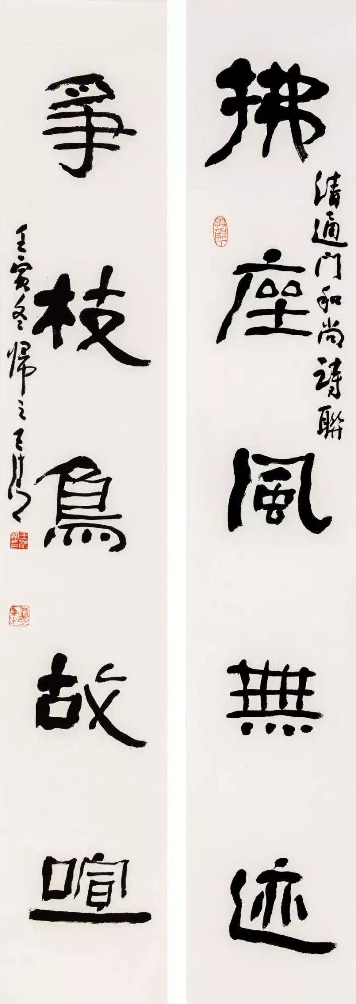 ◎隶书《清·通门和尚·拂座争枝诗联》22×138cm×2