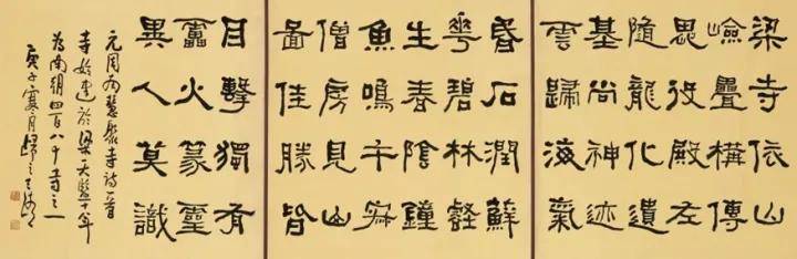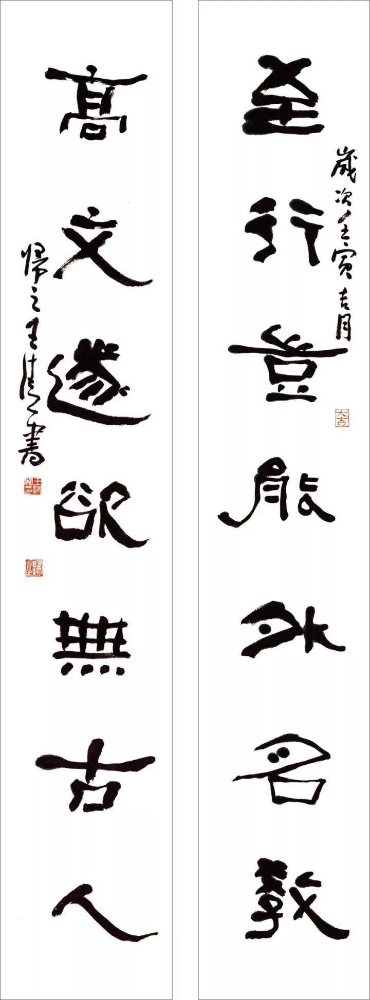 王清书法的入门与习俗无异。楷则唐人,行则晋宋,隶则东汉碑刻,草、篆少习。稍成便生异想,行倾心于八大,楷转习北碑,隶则注目清人,于郑簠、邓石如、何绍基、李瑞清、曾熙、沈曾植间探路。此时,碑学倾向已比较明显。经过长期淬炼陶冶,五体之中,行书和隶书面目初具,风格渐显。