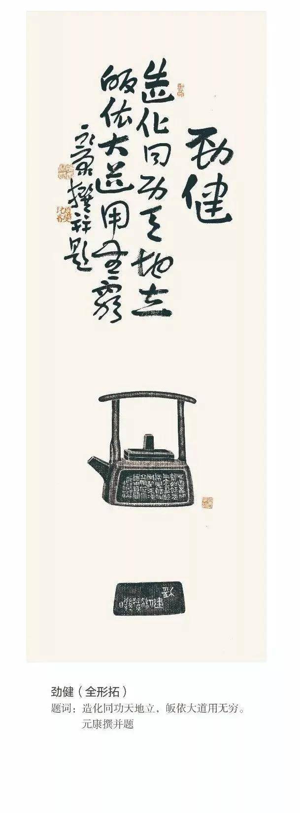 二十世纪九十年代初,元康兄举家乔迁丁蜀镇。游艺于画溪河两岸,与紫砂结缘,如蛟龙得海,灵性施然。其笔墨金石功夫,续接曼生气脉,融入文人情怀。既出于绳墨之外而不为法度所窘。篆刻陶印则直逼战国秦汉,得古玺风范,又取法于武威、居延,求印化之效果,高古中尤见清新,于陶刻陶印领域大展风采。后师从毛国强大师,泽如时雨,伯乐良骥相得益彰。