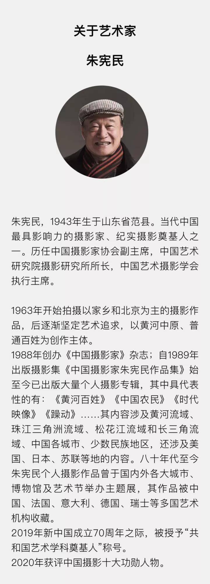 朱宪民,中国当代最具影响力的摄影师、纪实摄影的奠基人之一,在“圈內”大家都尊他为“朱公”、 敬他为“泰斗”。