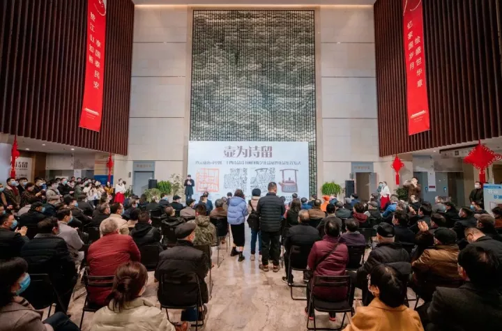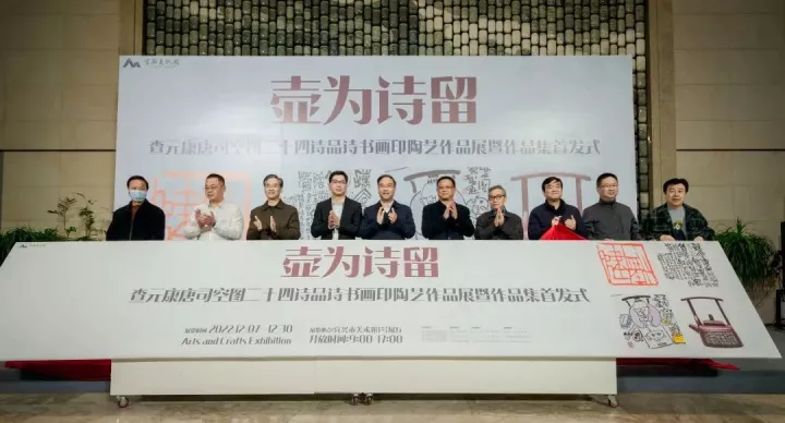 文化是一个国家、一个民族的灵魂。文化兴则国运兴,文化强则民族强。没有高度的文化自信,没有文化的繁荣兴盛,就没有中华民族伟大复兴。所以说,广大文艺工作者是我们这个时代精神和文化自信自强的创造者、记录者和实践者。为展示宜兴艺术家的艺术成果和奋斗风采,2022年12月7日,由宜兴市文体广电和旅游局、宜兴市政协文教卫体委员会、宜兴市文学艺术界联合会、宜兴市陶瓷行业协会、江苏省宜兴市紫砂工艺厂共同主办的【壶为诗留——査元康唐司空图二十四诗品诗书画印陶艺作品展】暨作品集首发仪式在宜兴市美术馆顺利开幕了。
