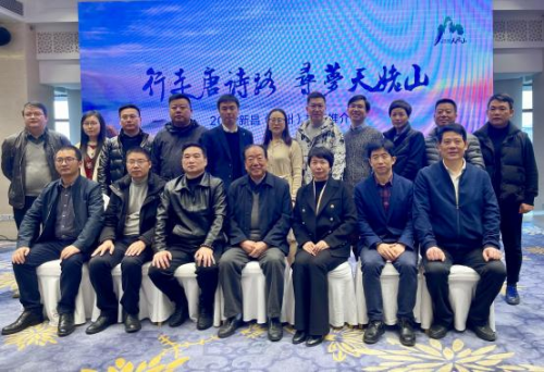 通过招商组组长王陆军和新昌县天姥山文化旅游发展中心副主 任孙旭峰的倾情推介,配之专题片闪亮登屏,天姥山景区秀丽的自 然山水,奇绝的丹霞地貌,千奇百怪,意境万千,充分展示了天姥 山景区作为唐诗文化、道教文化、佛教文化、茶道文化和名士文化 至高地的独特魅力。接着是旅行社协会代表与浙江商会代表相继发 言,以他们身临实境的观感和投资发展的实践,告诉人们,天姥山 景区是诗路活化的典型,富于想象力,是每个人圆梦的神地。天姥 山通过诗意活化和诗景再现,促进了一方山水风光与文脉传承及产 业发展的相融共进,推动当地百姓共富,带动农村经济发展。最后, 浙江省武警纵队愿政委张海洋以家乡人的身份,作了热情漾溢的典 型发言。新昌因创新而昌、人杰地灵,从这个八山半水分半田的山 区小县走出来的新昌人,不仅在杭州打拼的人很多,且遍布全国及 全世界。他们中有很多成功人士,对家乡怀有深切的感情,他们熟 知家乡的山山水水,愿为家乡的发展与共富增添一臂之力,是新昌 难能可贵的人脉资源。张海洋老政委对文化旅游发展也有其特到的 见解,他认为,一座天姥山,半部全唐诗,说明天姥山自古就蕴含 着一条纵贯千年的文艺路线、思想路线,而文化是永恒的,天姥山 景区遵循文化旅游融合发展的前景十分广阔,而且一定会越来越好。