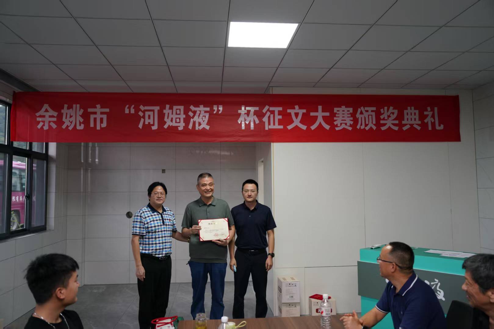 在颁奖现场,褚纳新的《谢阁老杨梅酒换珍珠的故事》和颜文祥的《喜见杨梅酿美酒》荣获一等奖,由余姚市河姆渡镇党委书记方勇、中共余姚市委党史研究室(市政府地方志编纂室)主任周斌等为获一等奖作者颁奖。赵建荣的《杨梅涅槃》、陈丽的《杨梅红时思念如酒》、王富春的《河姆液传奇:余姚商帮与河姆液杨梅酒的千古绝恋》和郑汉良的《七千年梅香》及朱祖益的《中国杨梅红 浙江河姆液》,五人荣获二等奖,三等奖8名和入围奖5名。