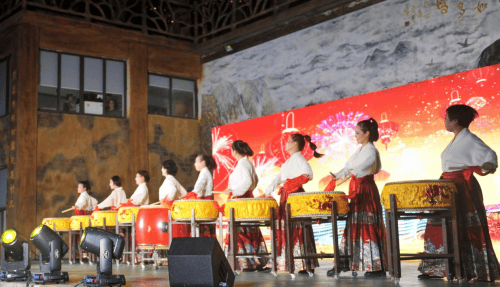竹里舞蹈队率先登场,带来气势磅礴的《威风锣鼓》,铿锵的鼓点、豪迈的姿态瞬间点燃现场气氛,展现出竹里人家昂扬向上的精气神。
