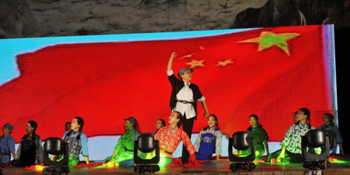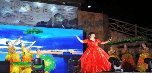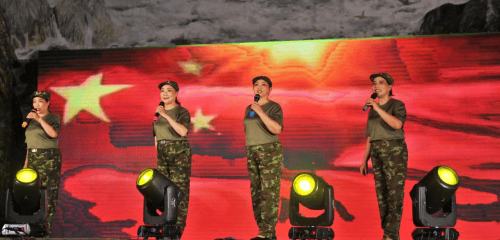 晚会尾声,蓝天艺术团带来重磅歌伴舞《筑梦中国》,嘹亮的歌声与优美的舞姿描绘出共同筑梦的美好愿景,将现场氛围推向高潮。随后,全体演员上台共同演唱《明天会更好》,熟悉的旋律回荡在竹里人家的夜空,大家挥舞着手,齐声歌唱,祝福伟大祖国越来越好。