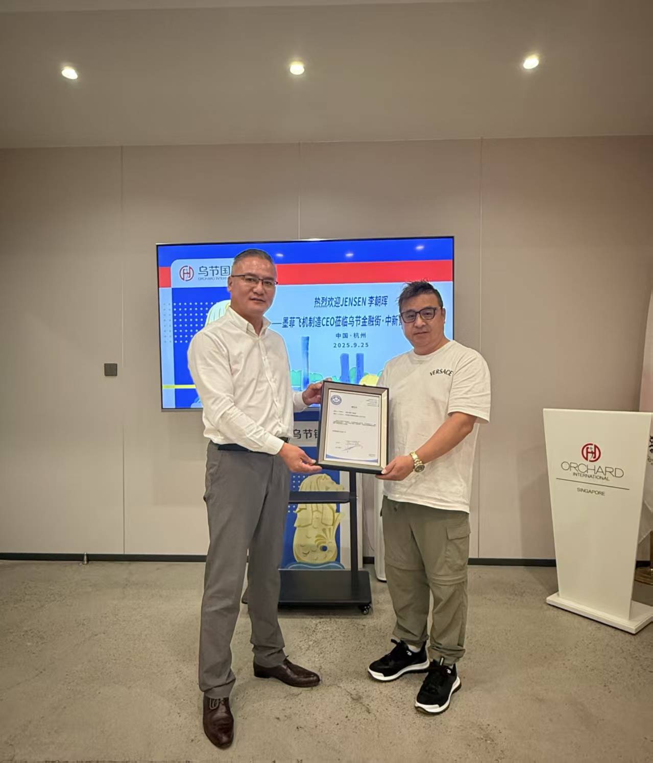 2025年9月25日,乌节金融街·中新智谷迎来航空领域里程碑事件——全球知名飞机制造商加拿大墨菲飞机(Murphy Aircraft)与中国区战略合作伙伴乌节国际中国区正式合作。墨菲飞机CEO JENSEN 李朝晖亲临现场,授予乌节国际中国区负责人吴文军两项关键授权:全面负责墨菲飞机在华生产基地的选址与建设,以及统筹与中国航空产业链的深度商务对接。