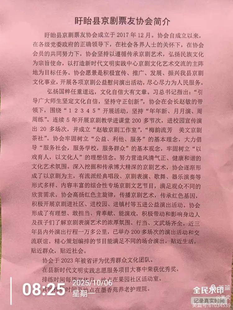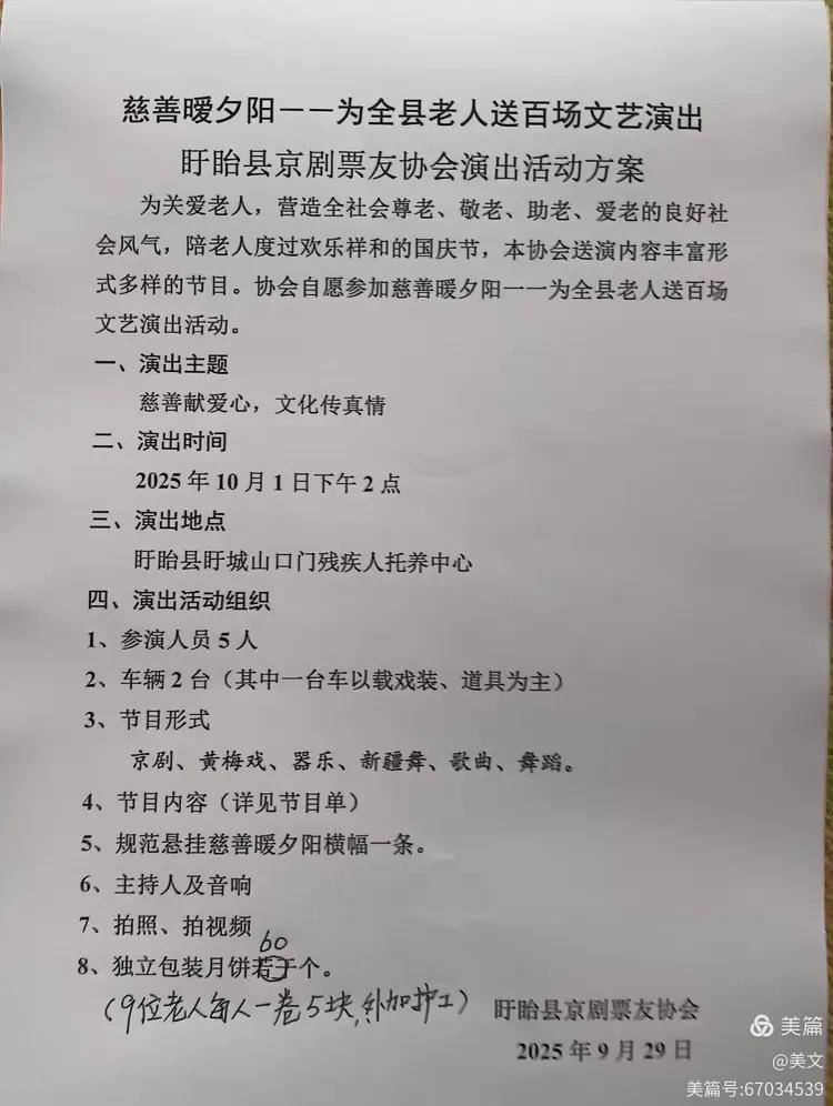 演出过程中,多位老人激动地站起身,连声向演员们道谢,“谢谢!谢谢你们给我们月饼吃,来陪我们过中秋节!” 他们看着节目、捧着月饼,脸上绽放出灿烂的笑容,整个敬老院都洋溢着温馨团圆的节日氛围。截至目前,盱眙县京剧票友协会的 “百场文艺演出” 已为众多老人送去欢乐,用实际行动诠释着对老年群体的暖心关爱和体贴用心。在特殊的节日里演职人员陪老人过节,老人开心快乐,演员刘霞说我们也开心快乐。