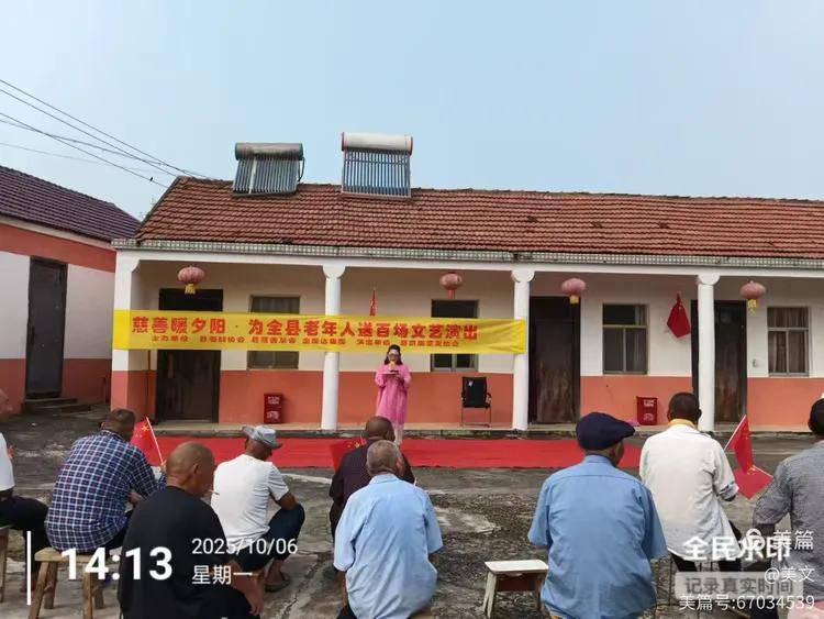 10 月 6 日中秋佳节,下午一点演员们又马不停蹄赶赴淮河镇明祖陵敬老院。伴着欢快的旋律,演出在热闹的新疆舞蹈中拉开帷幕:京剧《祖国的好山河寸土不让》字正腔圆、铿锵有力,《贵妃醉酒》《梨花颂》尽显国粹魅力;黄梅戏《春风送暖到襄阳》《天仙配》都是老人们耳熟能详的经典选段,勾起满满回忆;新疆舞《我的心中只有你》舞姿灵动,舞蹈《我把故乡比苏杭》柔美雅致;葫芦丝红歌联奏《没有共产党就没有新中国》等、笛子独奏《我和我的祖国》旋律激昂,老人们手里挥舞小红旗跟着音乐互动,嘴里哼唱着,脸上露出了满心满意的喜悦。最后全场大合唱《歌唱祖国》更是将气氛推向高潮,老人们晒着金秋的太阳,暖意洋洋,纷纷手摇红旗,跟着齐声歌唱。16个节目90多分钟的演出在金风送爽中愉快的结束了。