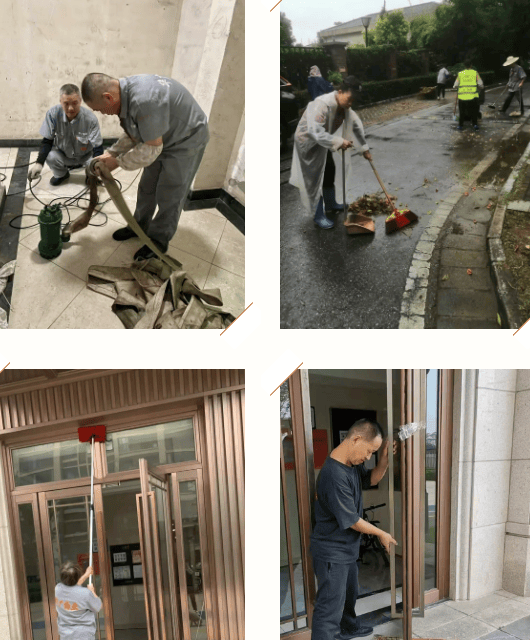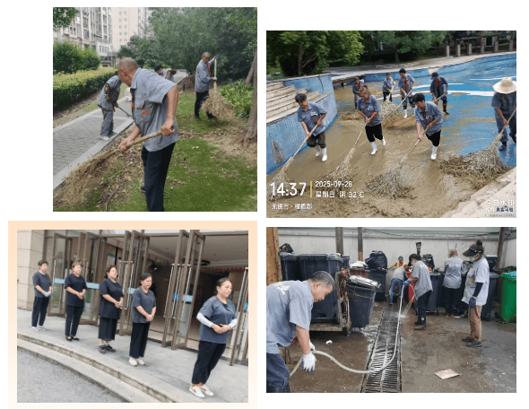 保洁团队是环境的守护者。他们不仅全面清理着园区的每一处垃圾,将散落的白色袋装落叶逐一收集、清运,还把楼道门窗,电梯等全部擦拭。他们的汗水,换来了家园一尘不染的洁净底色。