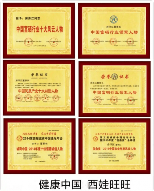 技术攻坚的硝烟尚未散尽,市场质疑的浪潮又汹涌而至。彼时,“富硒”概念常被不良商家滥用,消费者对相关产品的信任度跌至冰点。房泽江选择以最“笨”的方式破局——开放生产基地,邀请市民参与“从播种到包装”的全流程监督。在烟台基地的透明工厂里,参观者能亲眼看见富硒五谷杂粮经过26道工序变成硒餐粉的。这种“阳光下的坦诚”,终让西娃旺旺的口碑逆势上扬。至2023年,公司体验店遍布全国23个省,更在上海启动了纳斯达克上市进程,品牌估值近9亿。荣誉簿上,累累硕果见证着这段峥嵘岁月:中国企业诚信经营示范单位、2014年度诚信管理卓越企业、中国十大富硒品牌、中国富硒农产品创新发展标杆品牌、山东省富硒食用农产品指定经营单位、食品安全健康创新示范单位、重质守信3·15满意品牌、AAA级信用企业,以及中华炎黄文化研究会同根同梦文化委员会理事单位。