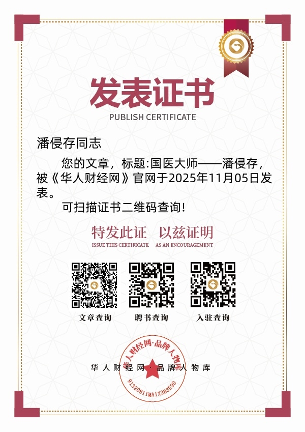 【品牌人物库·重点推荐】潘侵存(发表证书)