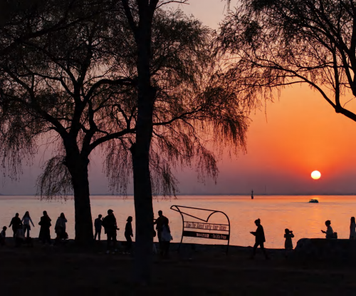 午后阳光正好,沿着湖滨景观带前行,从醉美三公里开启治愈之旅。这条沿洪泽湖延伸的景观带,是徒步与骑行的绝佳选择。步道旁设有观景平台,可驻足远眺洪泽湖大堤美好风光。作为蒋坝的“日落观测点”,落霞湾的暮色是不可错过的景致。
