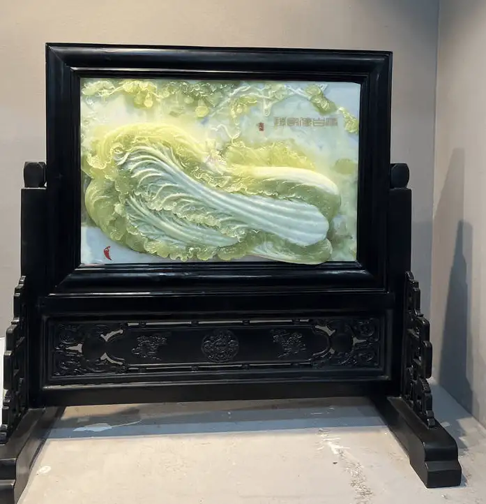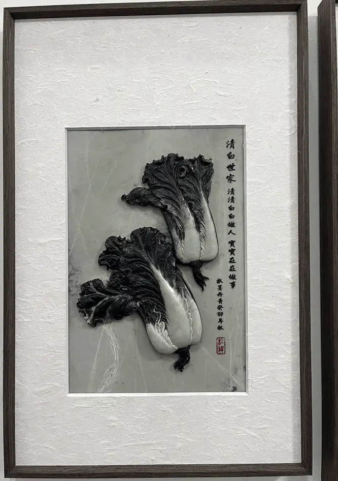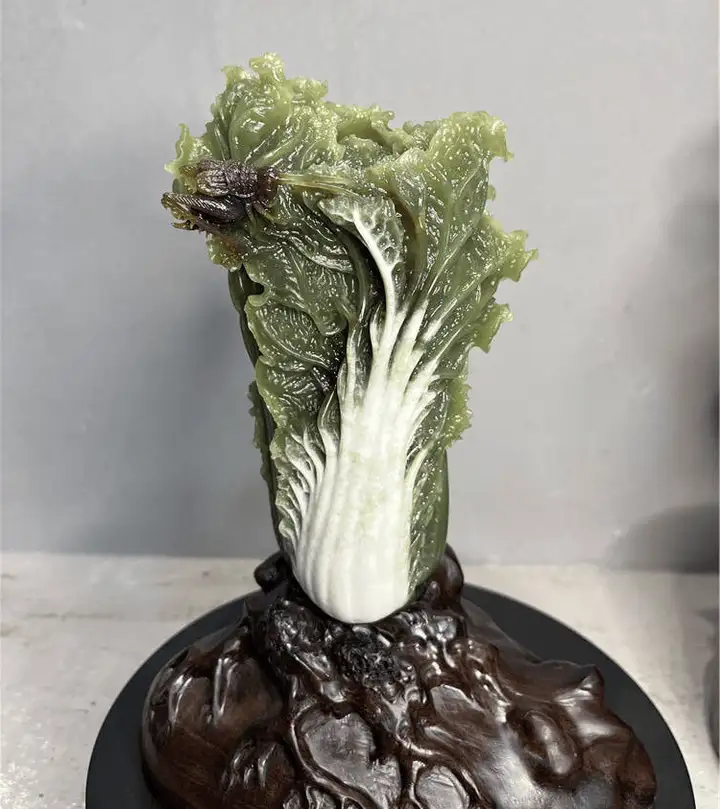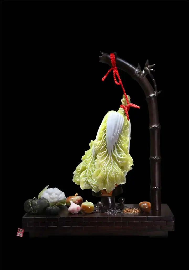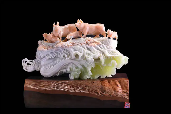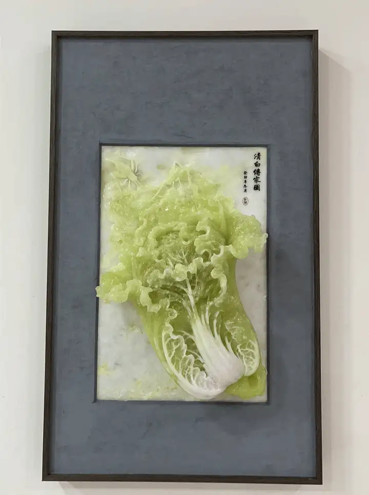 尤为擅长玉白菜的设计与雕刻,其作品注重顺色立意,结合写实与写意手法,利用原料绿白相间的特性,创新性的雕琢出“白帮绿叶的逼真白菜”,并在这一项荣获国家级奖项十二个金奖,被业界称为“东北白菜王”。以器载道,把白菜的清白之色与人的品德相融合,感悟出“清清白白做人,实实在在做事”的作人原则,用玉雕作品传播正能量。