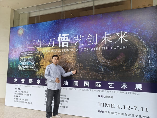 今天(4月12日)下午,“悟象·左晋当代油画艺术展”暨“我有一棵树·长在阿克苏”公益行动在杭州电魂自在里文化空间正式启幕。本次活动由悟象派创始人左晋携手电魂公益及鲸探数字艺术共同打造,试图回答一个问题:一幅画,能不能让戈壁滩上多长出一片林子?