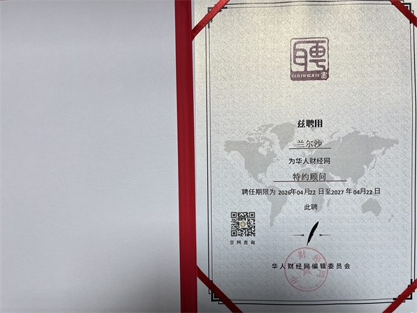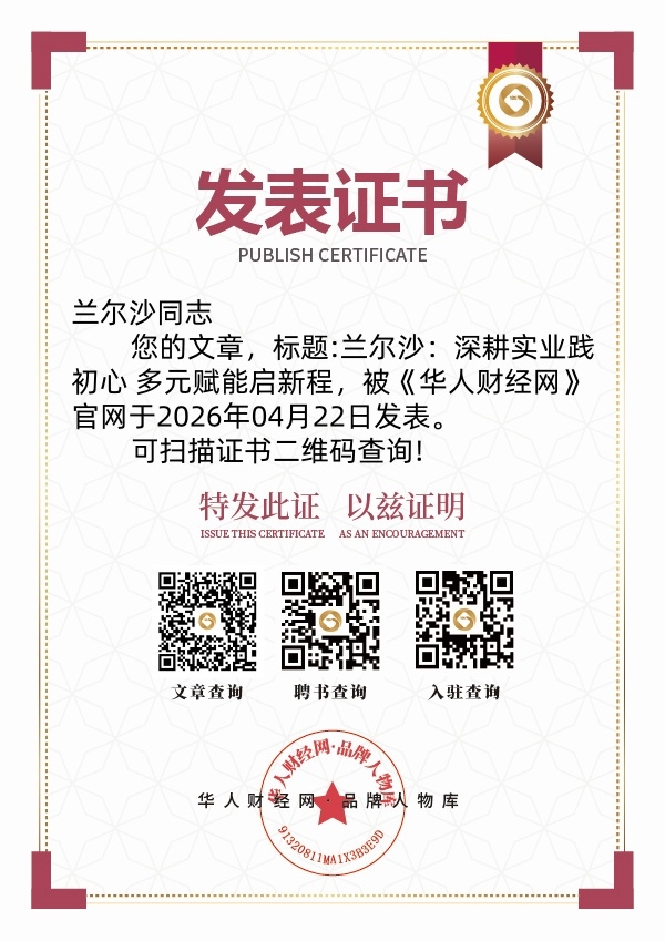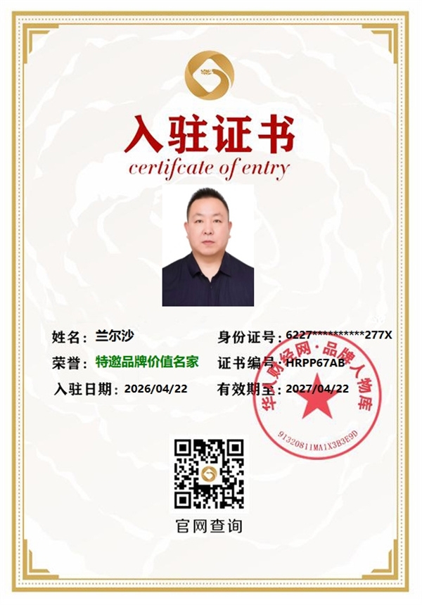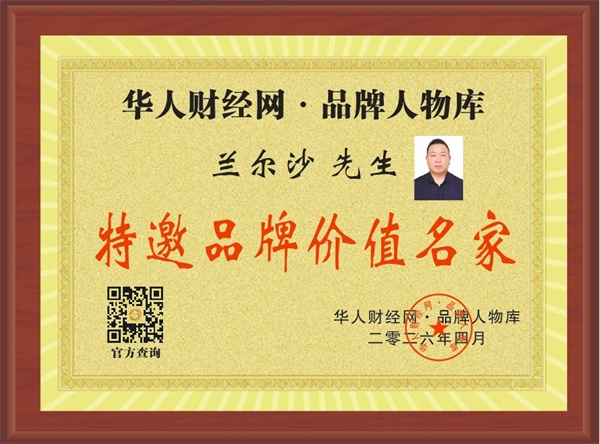 【品牌人物库·重点推荐】(兰尔沙)发表证书
